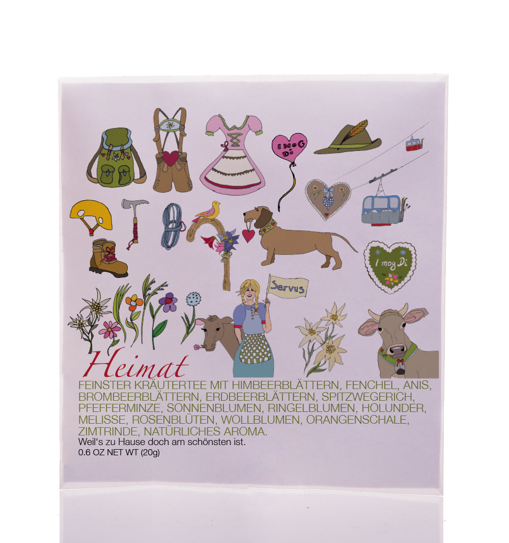 FEINSTER KRÄUTERTEE HIMBEERBLÄTTER, FENCHEL, ANIS, BROMBEERBLÄTTER, ERDBEERBLÄTTER, SPITZWEGERICH, PFEFFERMINZE, SONNENBLUMEN, RINGELBLUMEN, HOLUNDER, MELISSE, ROSENBLÜTEN, WOLLBLUMEN, ORANGEN UND ZIMTRINDE. MANDARINEN – VANILLE – ZIMT – GESCHMACK.
