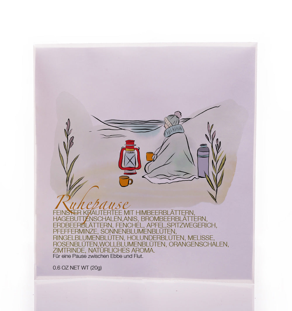 FEINSTER KRÄUTERTEE HIMBEERBLÄTTER, FENCHEL, ANIS, BROMBEERBLÄTTER, ERDBEERBLÄTTER, SPITZWEGERICH, PFEFFERMINZE, SONNENBLUMEN, RINGELBLUMEN, HOLUNDER, MELISSE, ROSENBLÜTEN, WOLLBLUMEN, ORANGEN UND ZIMTRINDE. MANDARINEN – VANILLE – ZIMT- INGWER – GESCHMACK.